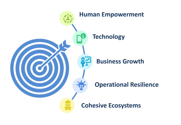 Tech systems alone don’t create value — enabled and empowered people do. Success comes from uniting People, Processes, Technology, Services and Culture.